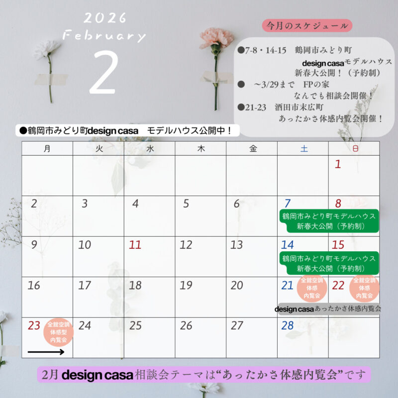 鶴岡市みどり町design casaモデルハウス新春大公開!(予約制)